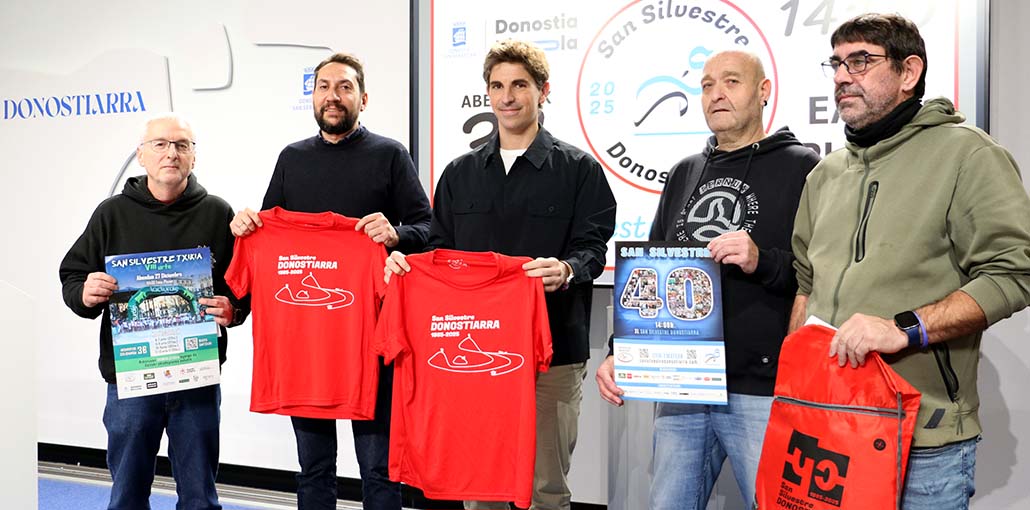 Este año la prueba popular de fin de año celebra su 40 edición. Hablamos con sus responsables para conocer cómo lo van a celebrar. Cerca de 6.500 personas participarán en esta prueba que contará con la tradicional carrera y la San Silvestre Txiki, y celebrará sus cuatro décadas con música y animación en el recorrido. La recogida de dorsales y bolsas del corredor se realizará mañana, 30 de diciembre, en el frontón de Amara Viejo. Todos los datos de esta prueba nos los aporta Xabier Altuna.