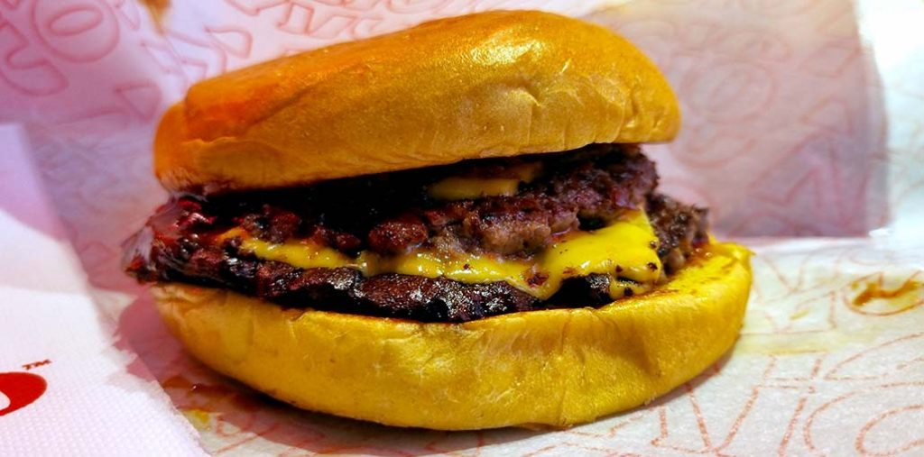 Bacon Chesseburger: Doble Smash Burger, Bacon crunchy, cCheddar, Pepinillo y Salsa VICIO en Pan Brioche