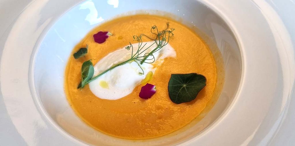 Salmorejo de Avellanas con Helado de Queso de Cabra